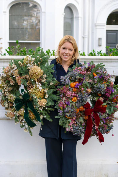Our next guest is florist, Lucy Vail. Lucy has a London-based luxury floral design studio, specialising in weddings, events and high-impact installations. She also supplies some of London’s top venues, businesses and private homes with flowers on a weekly basis. She prides herself on using as many British flowers as possible throughout the year, even at Christmas where her festive arrangements often feature dried flowers from her Suffolk flower farm alongside other natural, season items. We caught up with Lucy to chat about festive flowers, as well as her dream dinner party scenario.